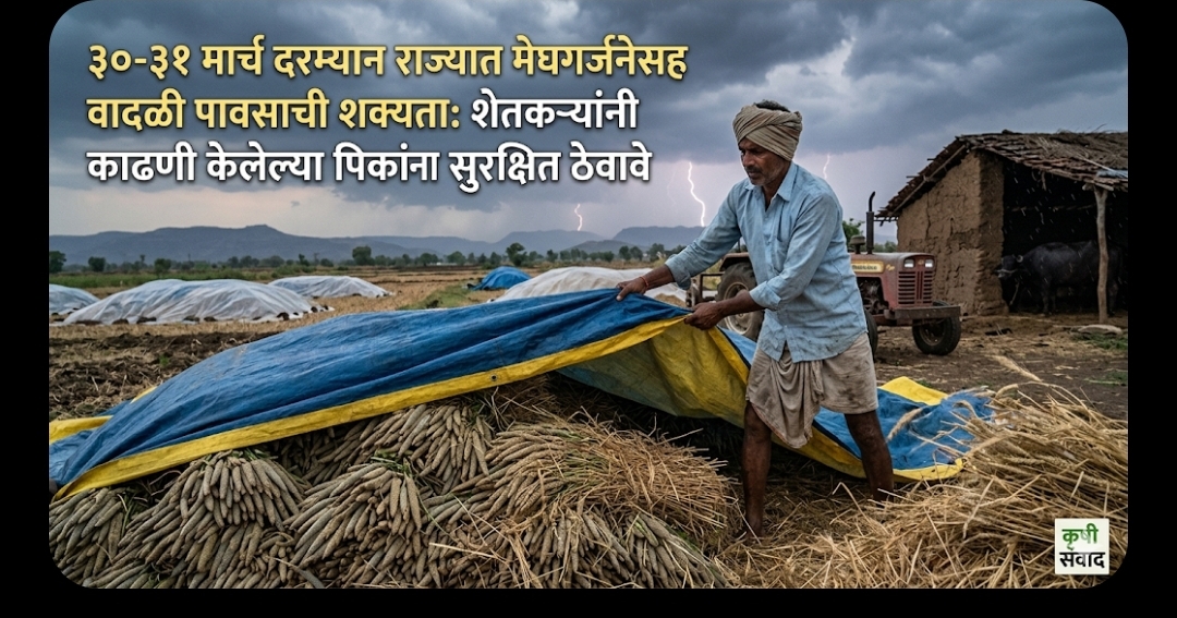राज्यावर अवकाळीचे सावट! ३०-३१ मार्चला मेघगर्जनेसह पावसाची शक्यता; शेतकऱ्यांना सतर्कतेचा इशारा