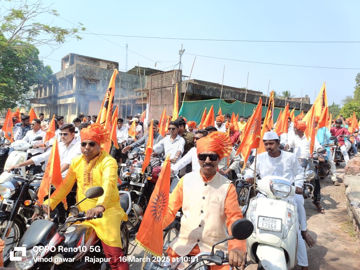 ▪️राजापूर शहरात शिवस्मृती मंडळाच्या वतीने शिवजयंतीनिमित्त रविवारी (१६ मार्च) भव्य मोटारसायकल रॅलीचे आयोजन करण्यात आले. या वाहनफेरीत सुमारे पाचशेहून अधिक दुचाकीस्वार सहभागी झाले होते. भगवे ध्वज, फेटे आणि जयघोषाने संपूर्ण शहर शिवमय झाले होते.