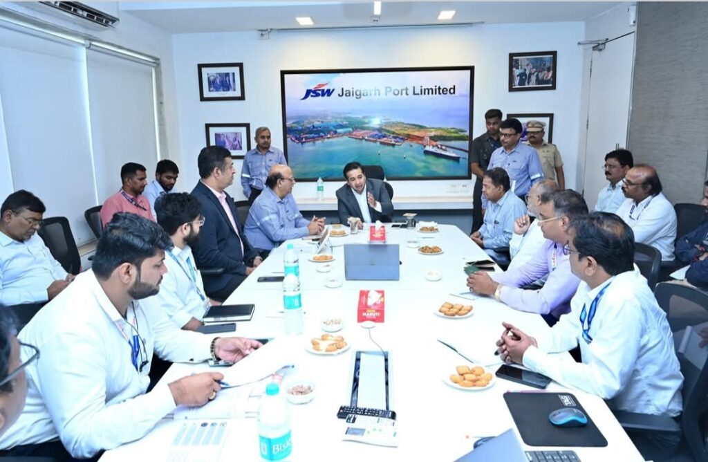 कोकणच्या आर्थिक प्रगतीस चालना देण्यासाठी आणि स्थानिक उत्पादकांना राष्ट्रीय तसेच आंतरराष्ट्रीय बाजारपेठ उपलब्ध करून देण्यासाठी जयगड येथे आज एक महत्त्वाची बैठक पार पडली. ही बैठक मंत्री नितेश राणे यांच्या अध्यक्षतेखाली JSW Port येथे घेण्यात आली.