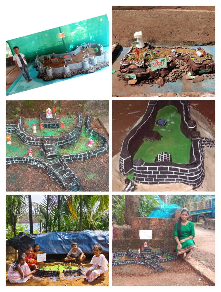 रत्नागिरी ~ युनेस्कोने शिवछत्रपतींच्या बारा दुर्गांना जागतिक वारसा म्हणून घोषित केले आहे. त्यांना जनसामान्यातून एक अभूतपूर्व मानवंदना देण्यासाठी जि. प. शाळा पूर्णागड नं,१ ता.जि. रत्नागिरी या शाळेने विद्यार्थी व पालकांच्या साह्याने मातीपासून आकर्षक किल्ले तयार करून त्याचे सेल्फी शासनाने दिलेल्या लिंक वर अपलोड करून प्रमाणपत्रे घेण्यात आली. व या उपक्रमात शाळेने खारीचा वाटा उचलावा आहे. या उपक्रमाला शाळा व्यवस्थापन समिती, पालक, विद्यार्थी या सर्वांचे मोठे सहकार्य लाभले.