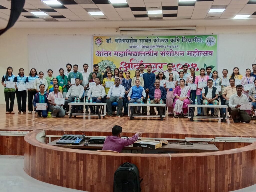 डाॅ.बाळासाहेब सावंत कोकण कृषि विद्यापीठ दापोली यांचेकडून आयोजित करण्यात आलेल्या अविष्कार – 2025 या संशोधनात्मक स्पर्धेमध्ये चिपळूण तालुक्यातील खरवते – दहिवली मधील शरदचंद्रजी पवार कृषि व संलग्न महाविद्यालयातील 6 विद्यार्थ्यांनी घवघवीत यश संपादन केले. अविष्कार ही संशोधनात्मक स्पर्धा असुन या स्पर्धेच्या माध्यमातून कृषि विद्यापीठ व संलग्न महाविद्यालयामधील विद्यार्थ्यांच्या संशोधनात्मक विचारांना सादरीकरणासाठी उत्तम व्यासपीठ दिले जाते .याच माध्यमातून विद्यार्थ्यांच्या संशोधनात्मक गुणांना वाव दिला जातो.या स्पर्धेमध्ये कोकण कृषि विद्यापीठ व संलग्न महाविद्यालयामधील सुमारे एकशे आठ विद्यार्थ्यांनी सहभाग नोंदवला. यामधुन शरदचंद्रजी पवार कृषि व संलग्न महाविद्यालयामधील कु.स्वयम दळी व कुमारी सानिया माने यांनी वाणिज्य व व्यवस्थापन शाखेतून प्रथम क्रमांक मिळवला. कु. स्वयंभू मेस्त्री व कु.उत्कर्ष पाटणकर हे या महाविद्यालयाचे उद्यानविद्या शाखेचे पदव्युत्तर अभ्यासक्रमाचे विद्यार्थ्यी असुन त्यांनी शुद्ध शास्त्र शाखेतून प्रथम क्रमांक पटकावला. तसेच कुमारी मिली शेलार व कु. साक्षी महाडीक यांनी औषध शास्त्र शाखेतून द्वितीय क्रमांक मिळवत दैदीप्यमान यश संपादन केले.या सर्व विद्यार्थ्यांनी डीटोक्स केअर ,न्यु ट्री कोअर,विड टु वंडर फुड या नाविन्यपूर्ण संशोधनातुन सर्व मान्यवरांचे लक्ष वेधले तसेच या सर्व प्रकल्पांचे व्यावसायिक महत्व उपस्थितांसमोर उत्तम रित्या सादर केले.या यशस्वी कामगिरीबद्दल सह्याद्रि शिक्षण संस्थेचे कार्याध्यक्ष व चिपळूण संगमेश्वर विधानसभा मतदार संघाचे लोकप्रिय आमदार शेखरजी निकम व महाविद्यालयाचे प्राचार्य डॉ.सुनितकुमार पाटील यांनी सर्व विजेते व सहभागी स्पर्धकांचे विशेष कौतुक केले व त्यांना पुढील संशोधनात्मक वाटचालीस शुभेच्छा दिल्या. या सर्व विजेत्या व सहभागी विद्यार्थ्यांना महाविद्यालयाचे प्राचार्य डॉ.सुनितकुमार पाटील व प्रा.रवींद्र माने यांचे सखोल मार्गदर्शन लाभले.या दैदीप्यमान यशाबद्दल विद्यार्थ्यांचे सर्व स्तरांतुन विशेष कौतुक होत आहे.