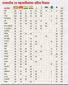 राज्यातील २९ महानगरपालिकांच्या अंतिम निकालांचा हा तक्ता केवळ आकड्यांची बेरीज नसून, तो महाराष्ट्राच्या लोकशाही मनोवृत्तीचा सखोल, बहुआयामी आणि वास्तवदर्शी आरसा आहे. प्रत्येक शहरातील निकाल त्या त्या शहराच्या सामाजिक, आर्थिक, सांस्कृतिक आणि राजकीय वास्तवाचा साक्षीदार ठरतो.